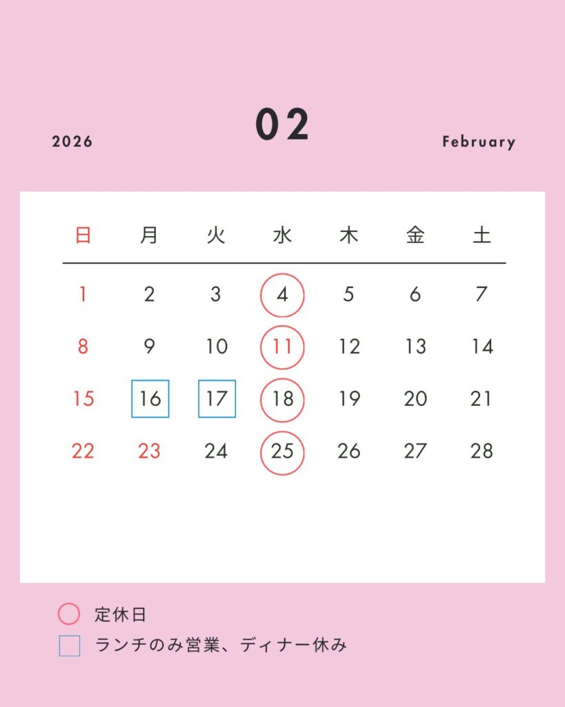 For lunch, we offer two types of pasta that change weekly and the owner’s special omelette rice. For dinner, the restaurant offers a variety of course and individual dishes using mainly local ingredients, as well as game cuisine prepared by the owner himself.